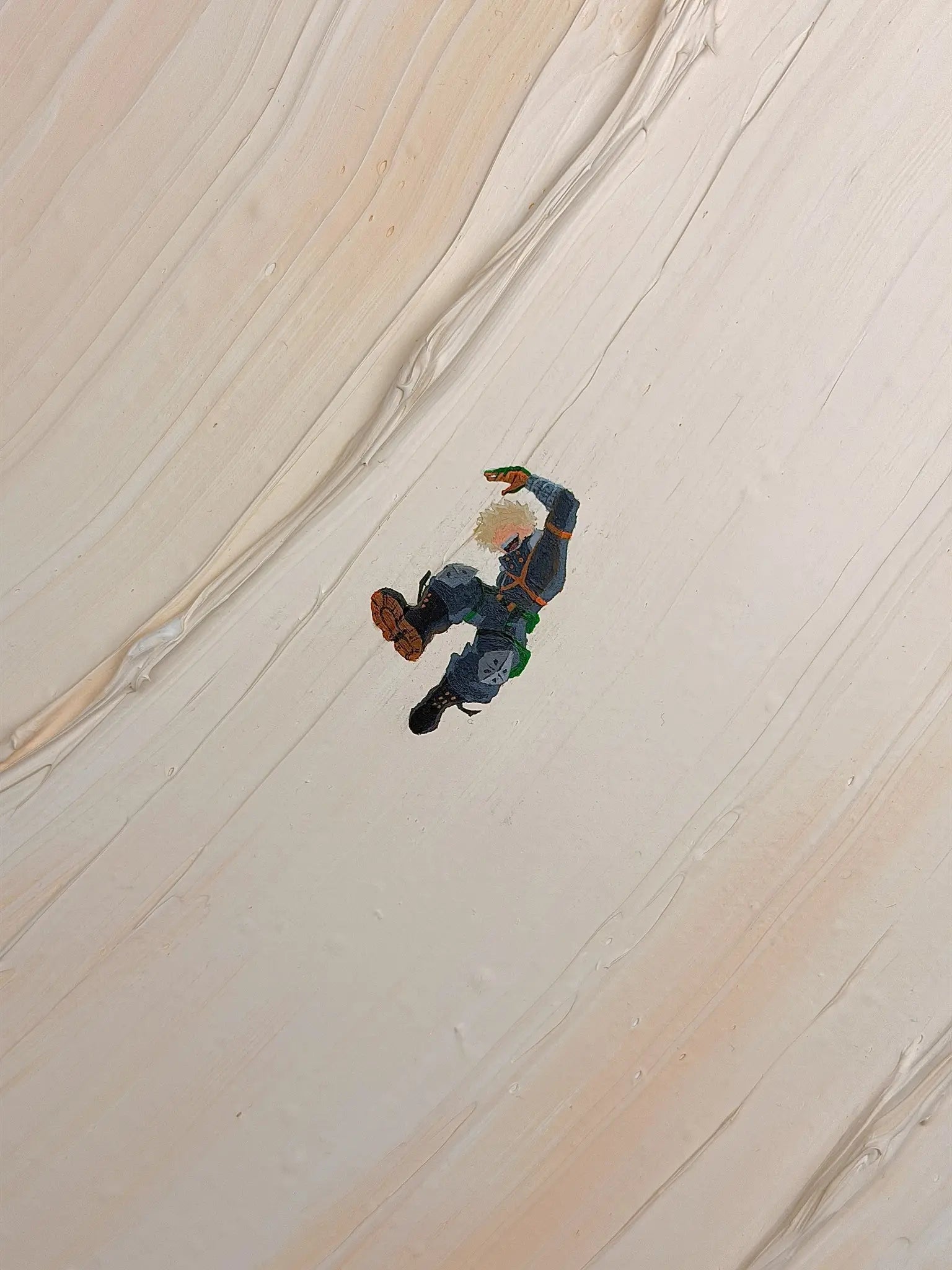 This pose is showing him embracing what defines him rather than fighting it. The vast, textured background amplifies this feeling, placing all focus on his momentum and energy, free from external noise or expectation.
